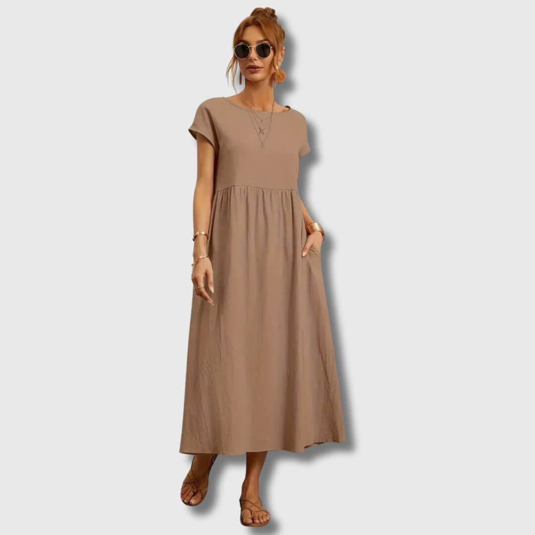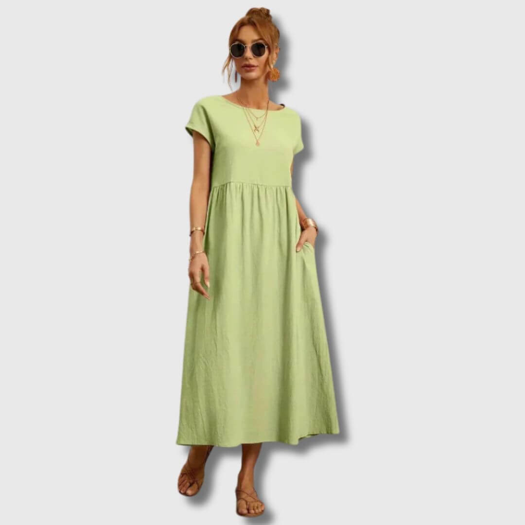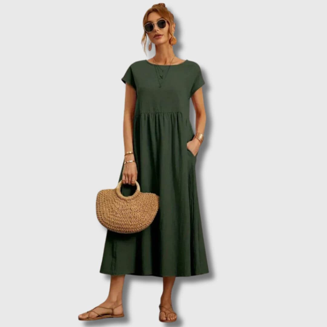 Das Nerith Weiches Baumwollkleid ist für diejenigen entworfen, die die sanfte Umarmung von atmungsaktiven Stoffen und zeitlosem Stil lieben. Aus hochwertiger Baumwolle gefertigt, bietet dieses Kleid ein leichtes Gefühl, das Sie während der Frühlingszeit kühl und komfortabel hält. Egal, ob Sie durch einen Bauernmarkt schlendern, ein Frühstück im Freien genießen oder einen entspannten Nachmittag verbringen, dieses Kleid verbindet Weichheit mit schlichter Eleganz.
