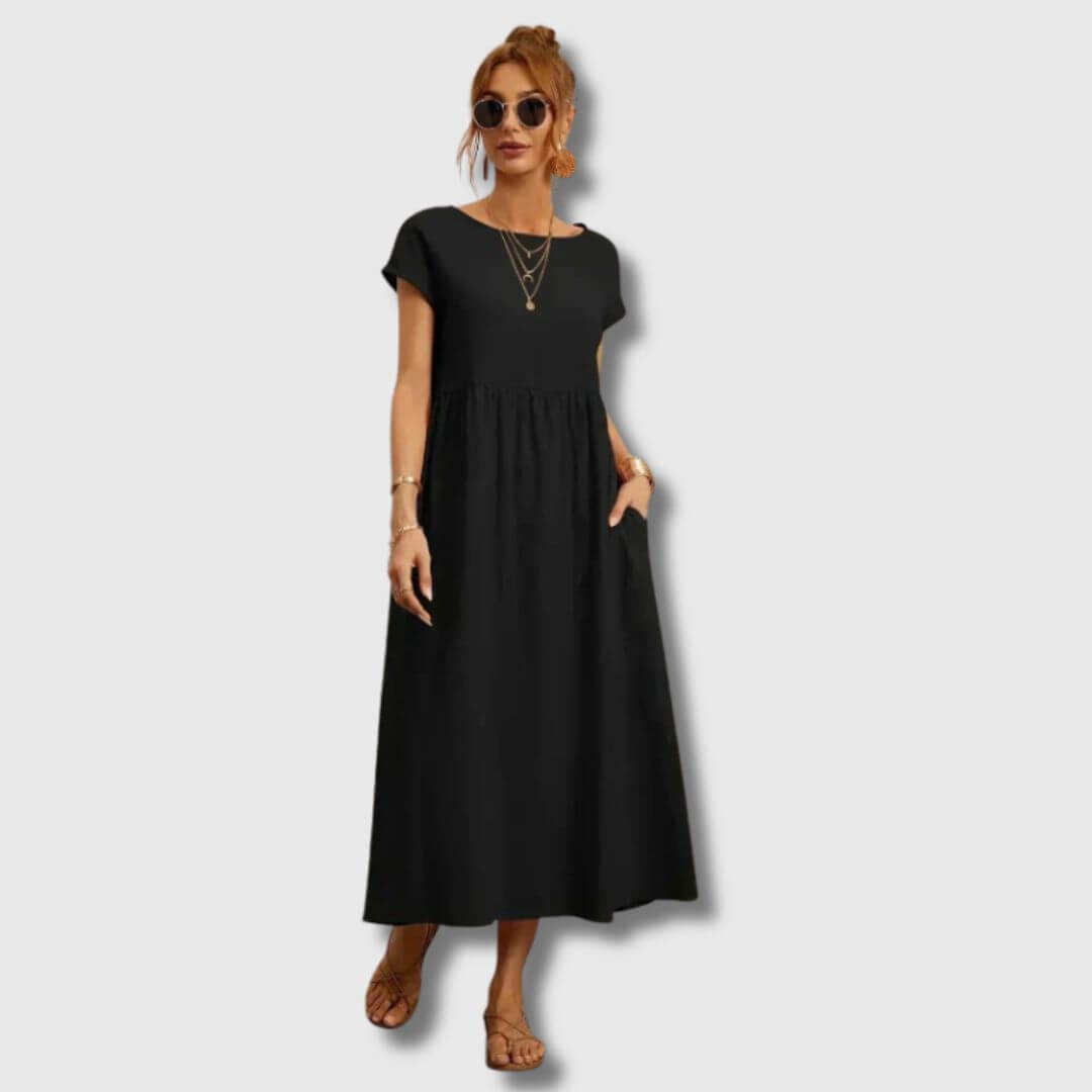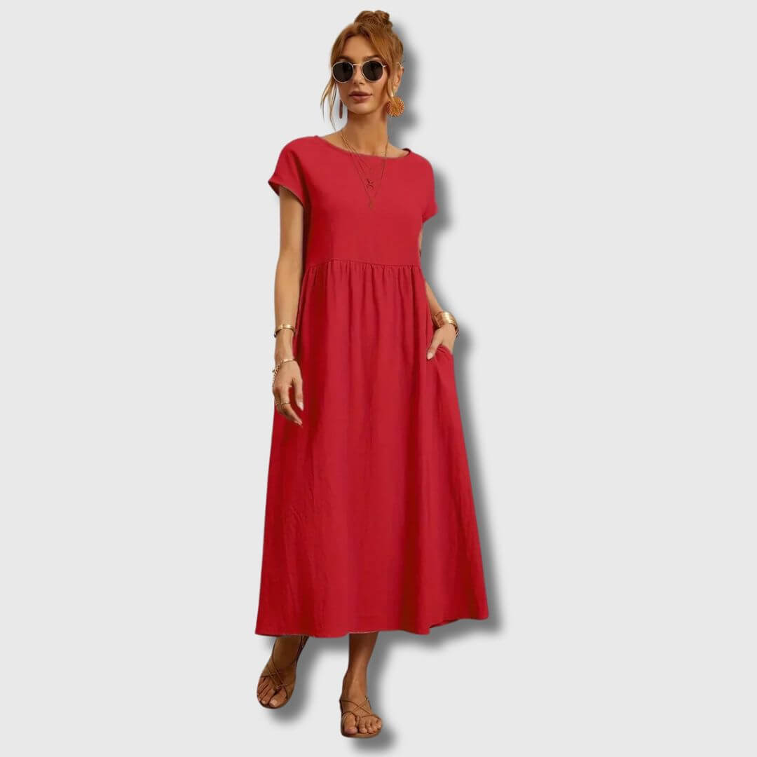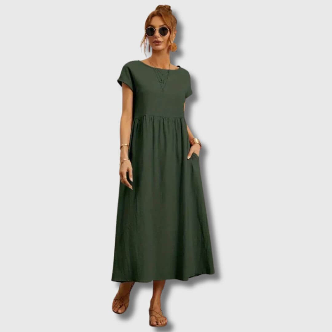 Das Nerith Weiches Baumwollkleid ist für diejenigen entworfen, die die sanfte Umarmung von atmungsaktiven Stoffen und zeitlosem Stil lieben. Aus hochwertiger Baumwolle gefertigt, bietet dieses Kleid ein leichtes Gefühl, das Sie während der Frühlingszeit kühl und komfortabel hält. Egal, ob Sie durch einen Bauernmarkt schlendern, ein Frühstück im Freien genießen oder einen entspannten Nachmittag verbringen, dieses Kleid verbindet Weichheit mit schlichter Eleganz.